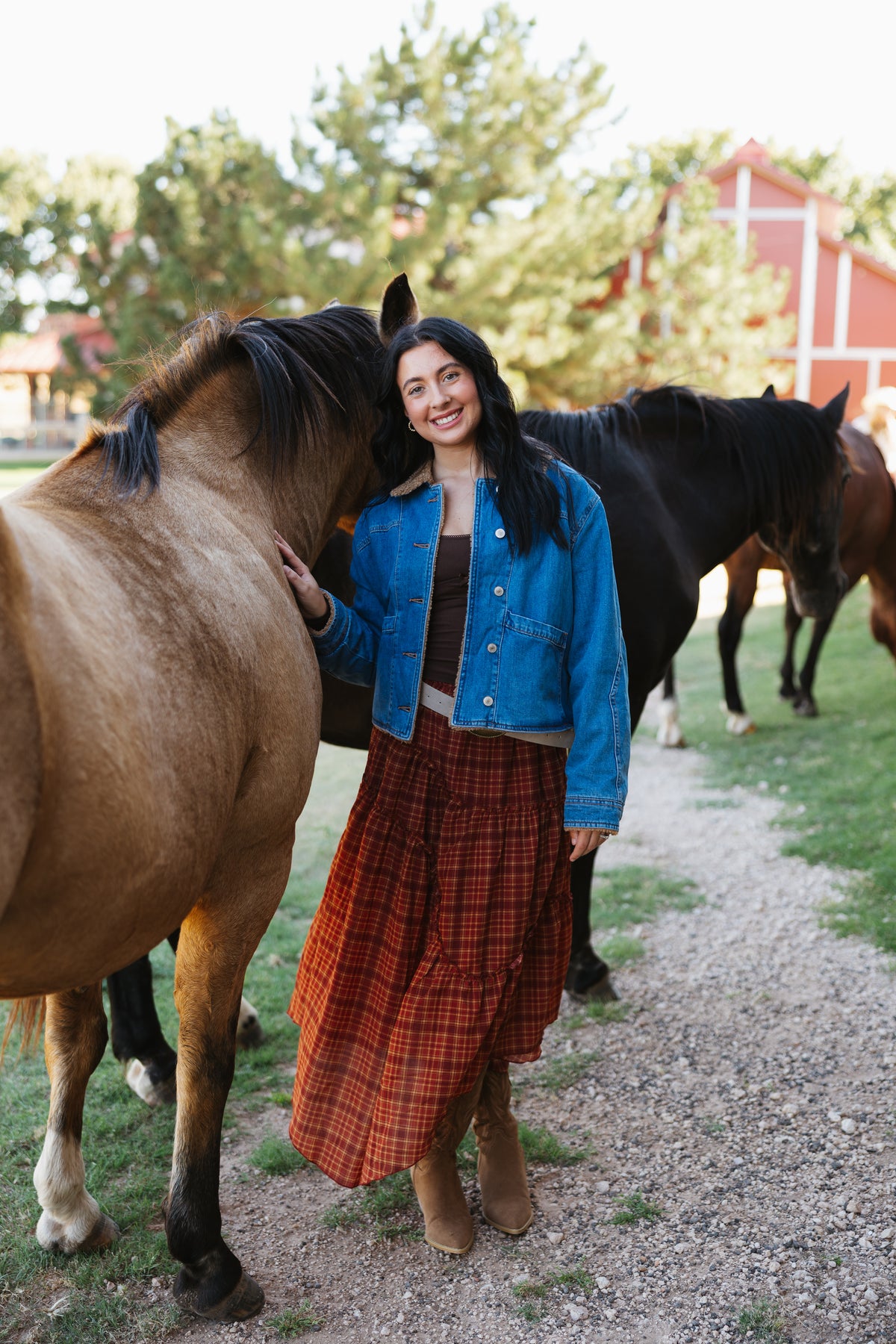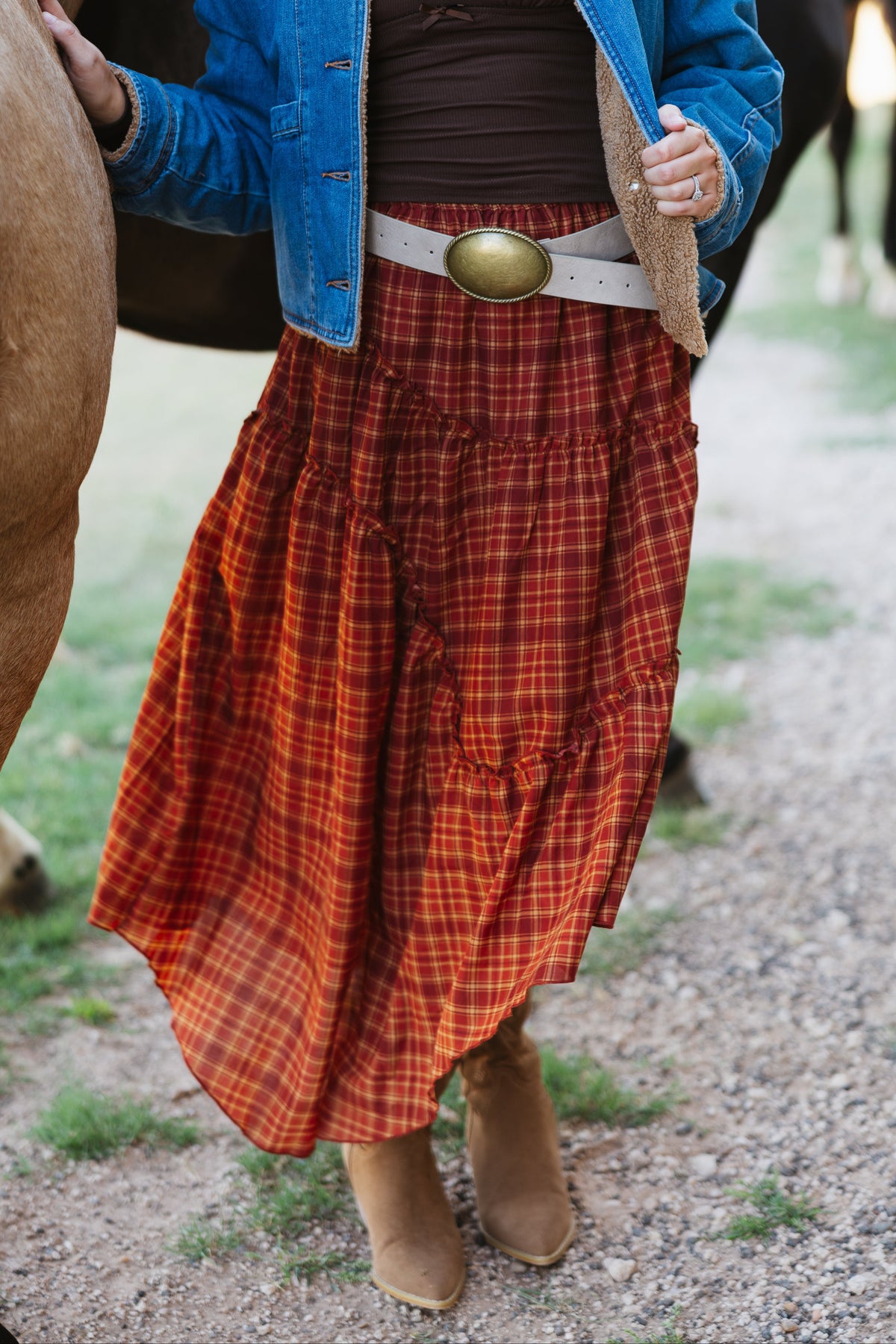 Plaid Ruffle Detail Handkerchief Midi Skirt