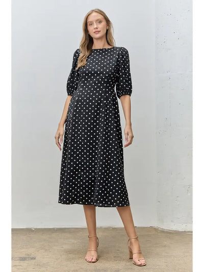 Pamela Polka Dot Short Sleeve Midi Dress