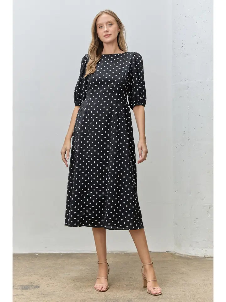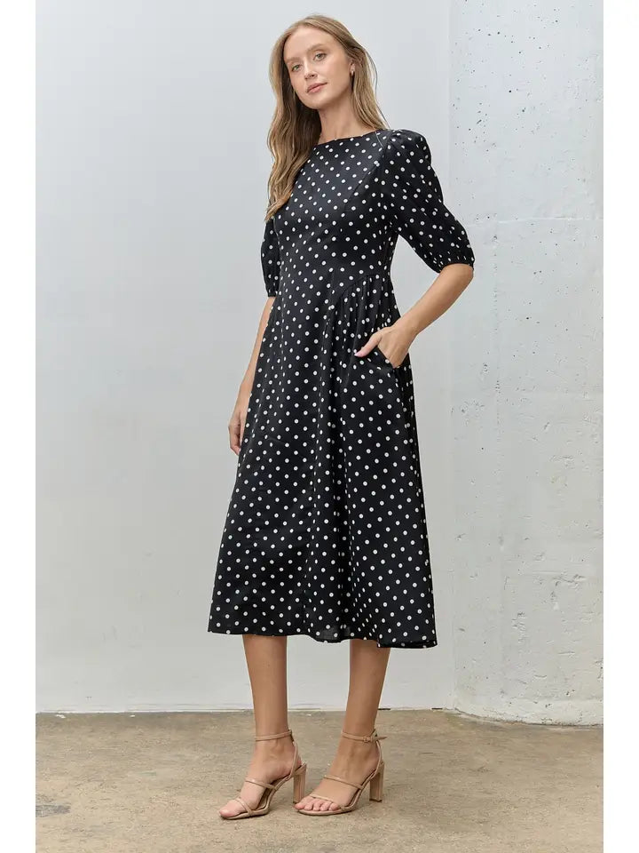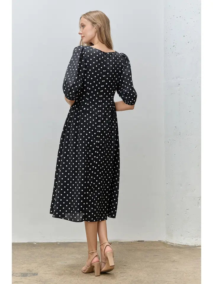 Pamela Polka Dot Short Sleeve Midi Dress