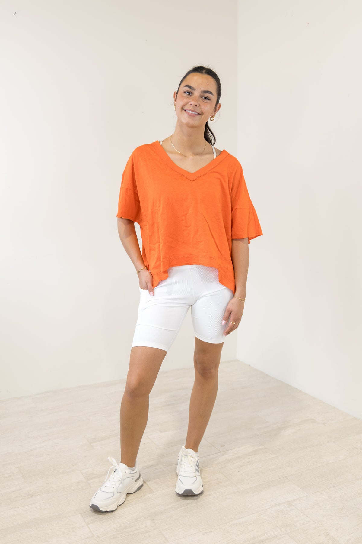White Ribbed Biker Shorts