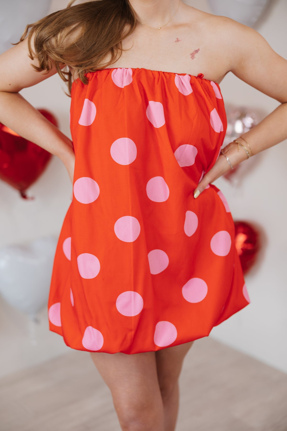 Polka Dot Strapless Bubble Balloon Dress