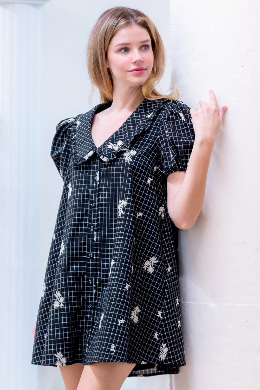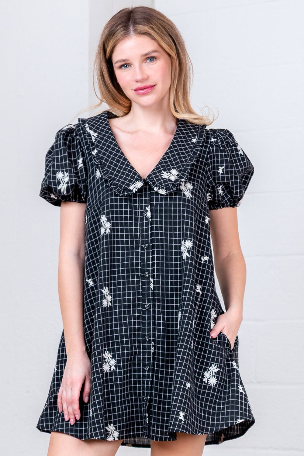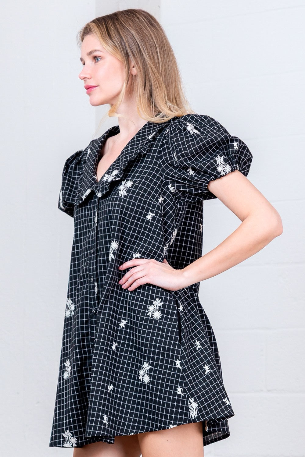 Short Puff Sleeve With Platter Collar A Line Mini Dress