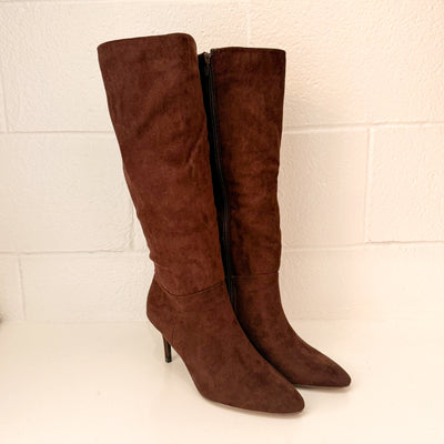 smooth style suedeish heeled boots
