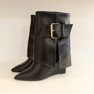 cool girl foldover wedge boots
