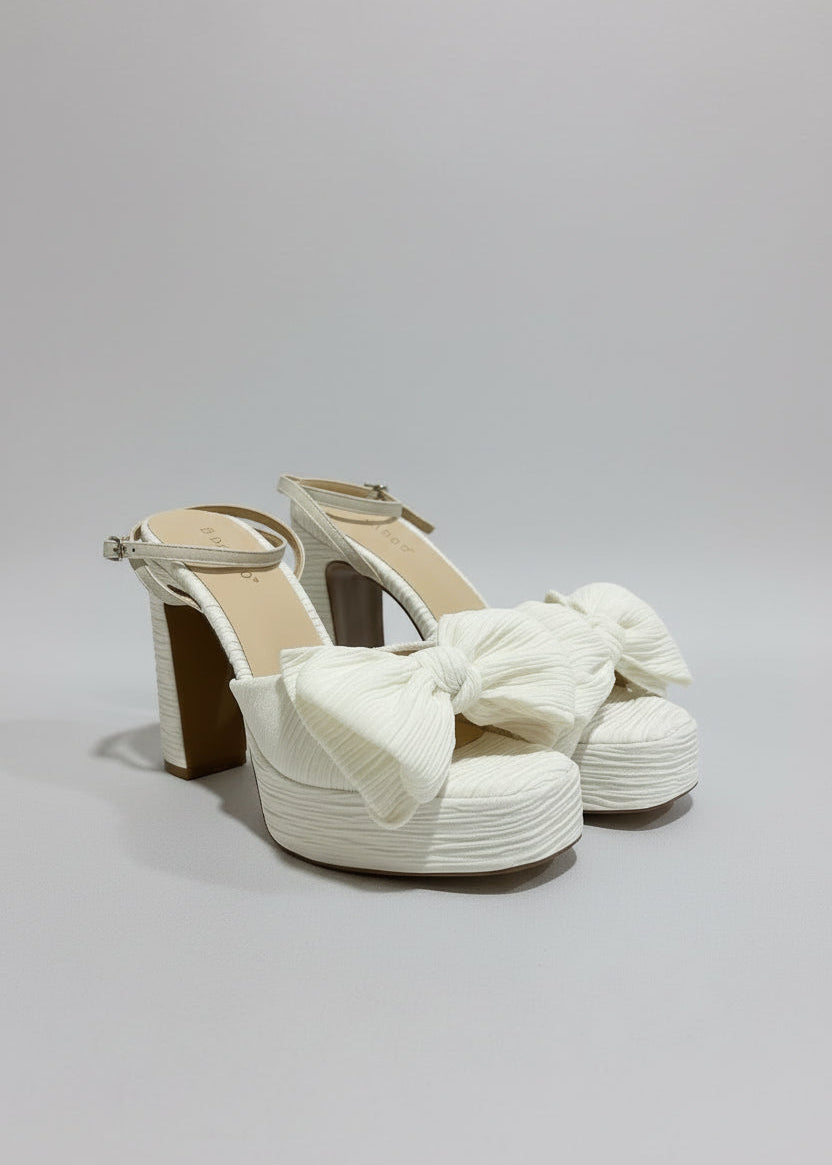 BOW AND QUARTER STRAP PLATFORM IVORY FABRIC