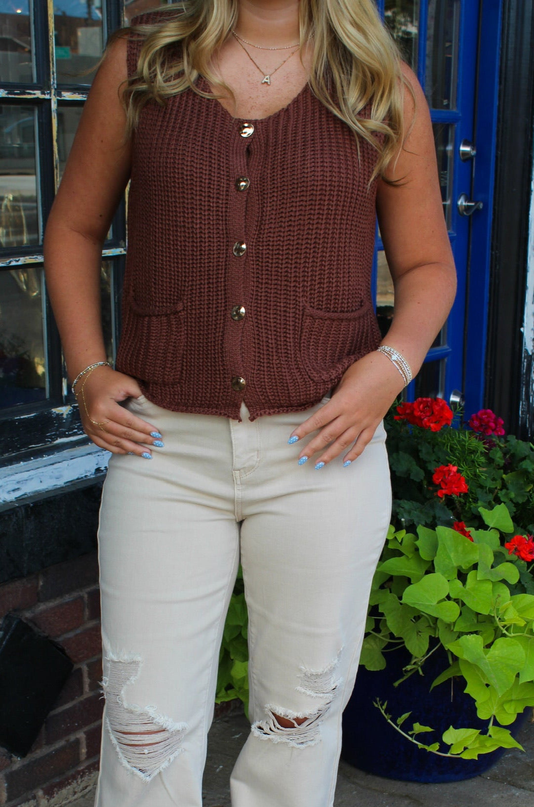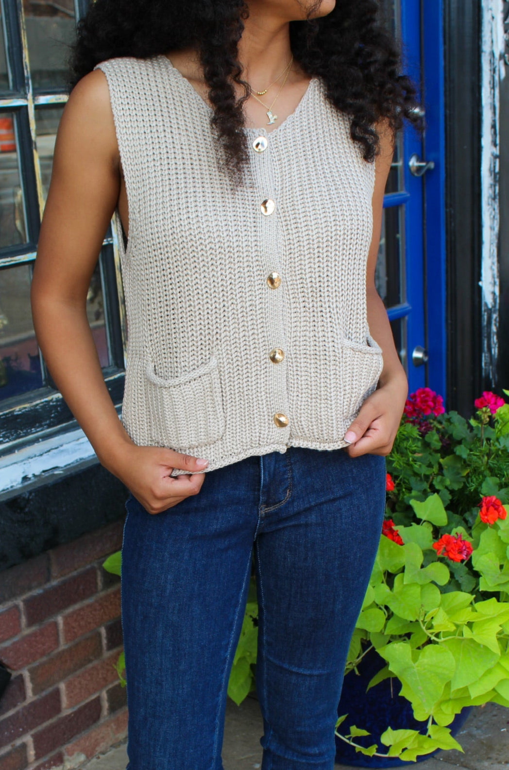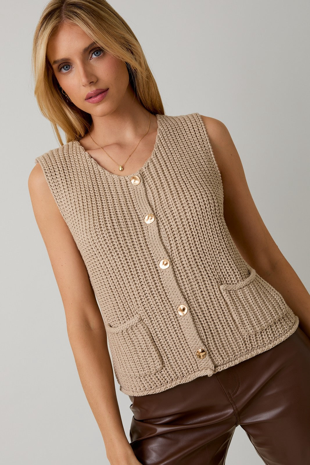 Effortlessly Me Sleeveless Chunky Knit Button Down
