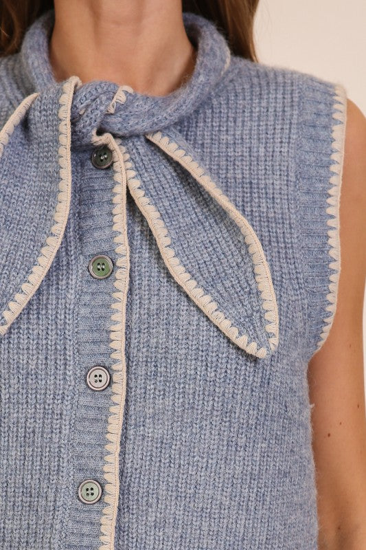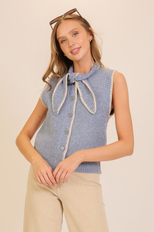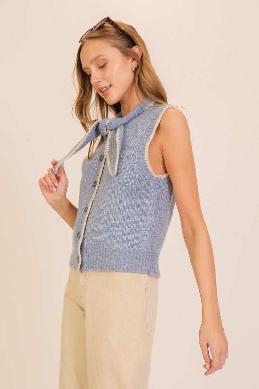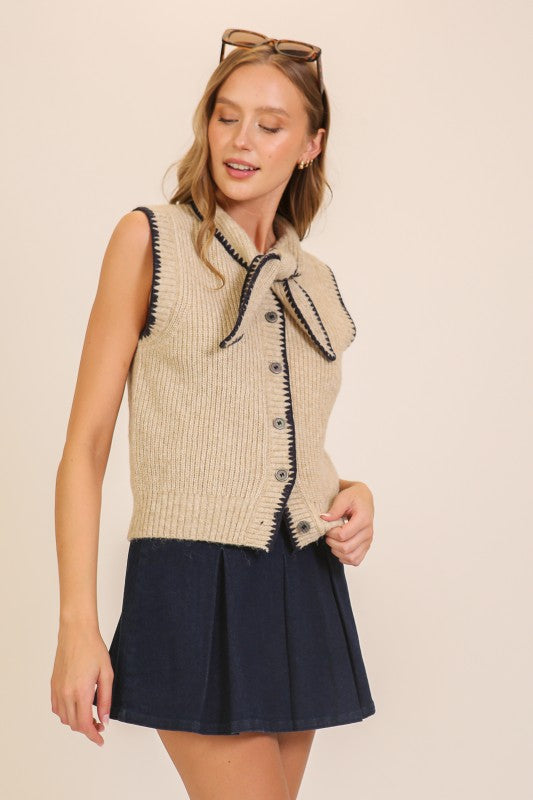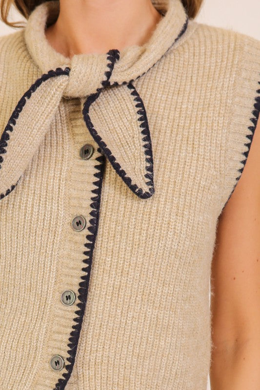 EDGE CONTRAST BUTTON DOWN VEST WITH NECK TIE