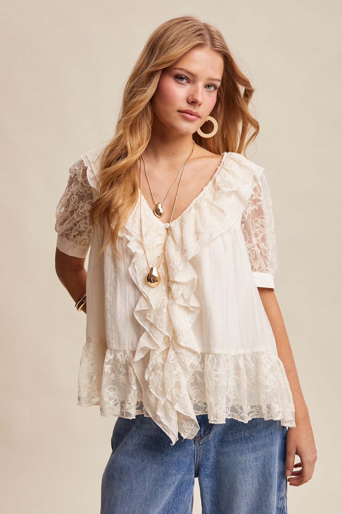 • Ruffle Neck and Front Detail