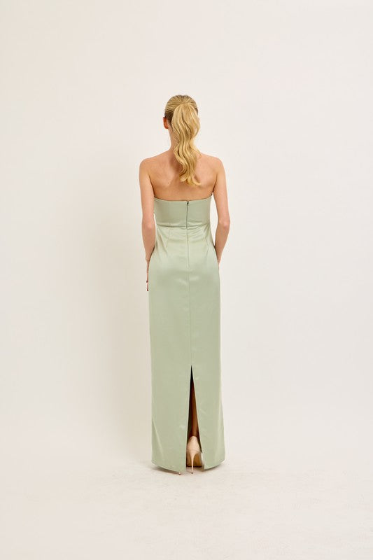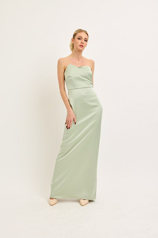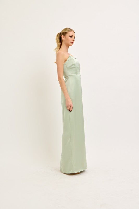 In The End Strapless Asymmetrical Satin Maxi Dress