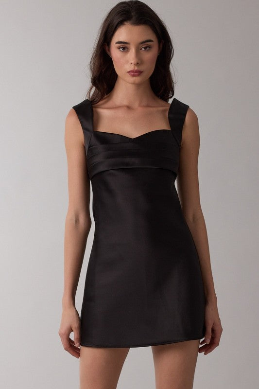 SATIN FOLD DETAIL SWEETHEART HOLIDAY MINI DRESS